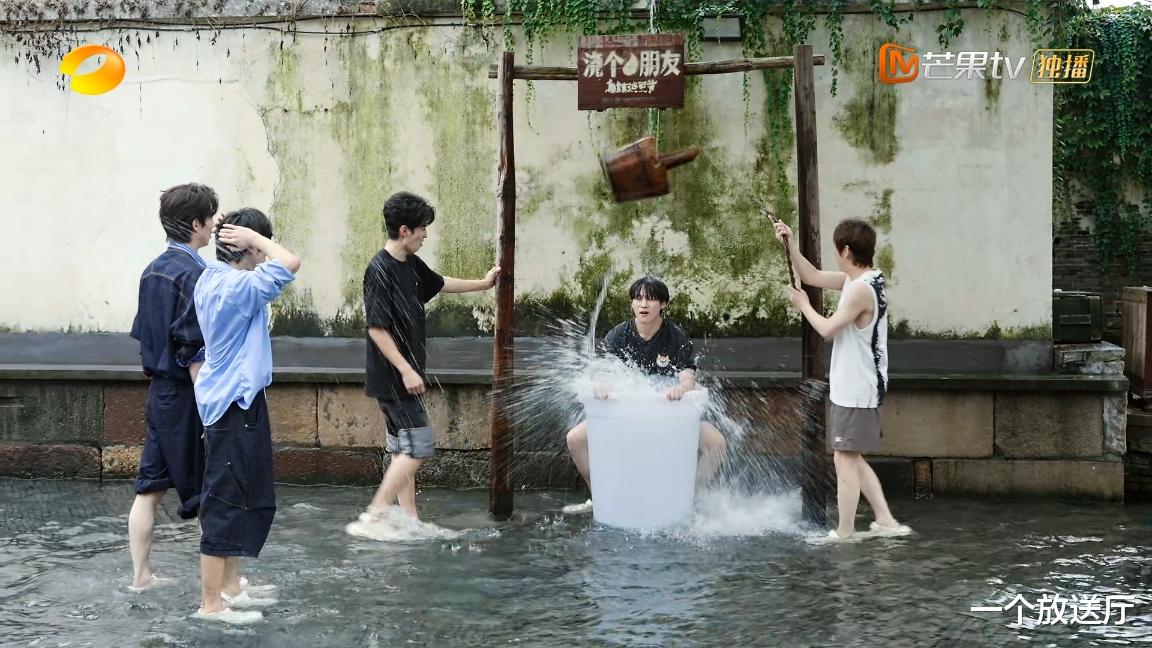 到了水池,吴泽林立马“浇了个朋友”,一桶水从头浇下来,直接湿了。