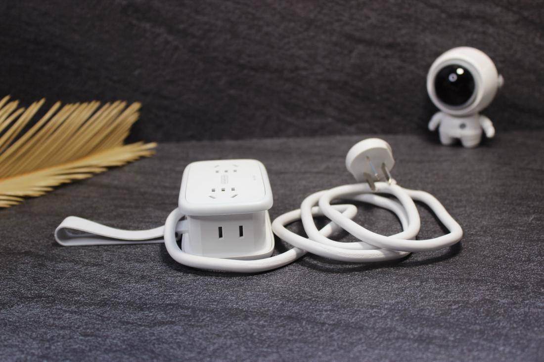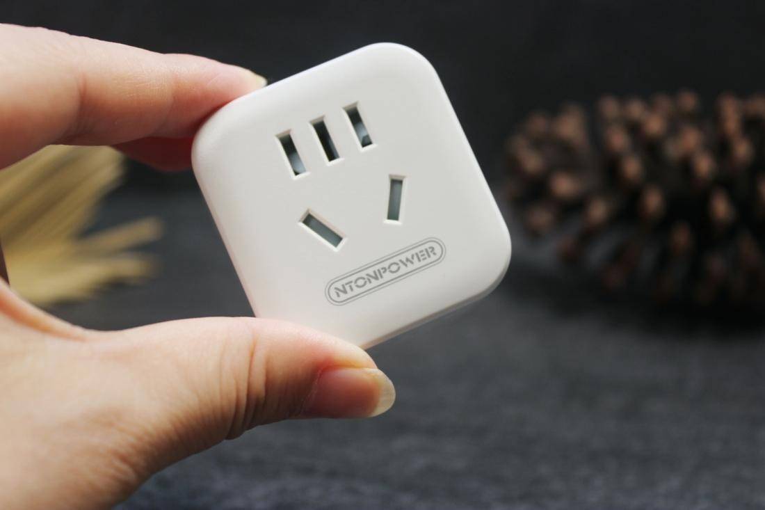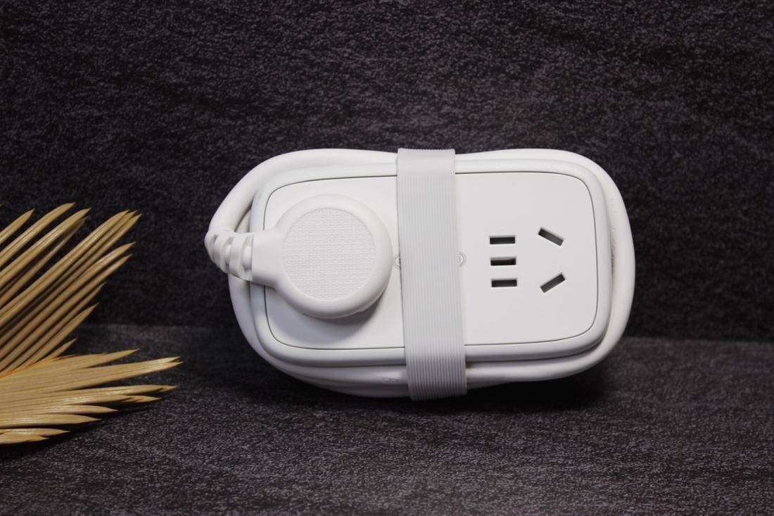 实测产品三围为107×60×40mm,远比传统插座小巧,重量控制在280g左右,只比现在很多品牌的旗舰手机稍重。外壳采用高规格V0级阻燃PC材料,经过特殊哑光处理,既保持了良好的触感,又避免了常见的光面塑料易留指纹的问题。