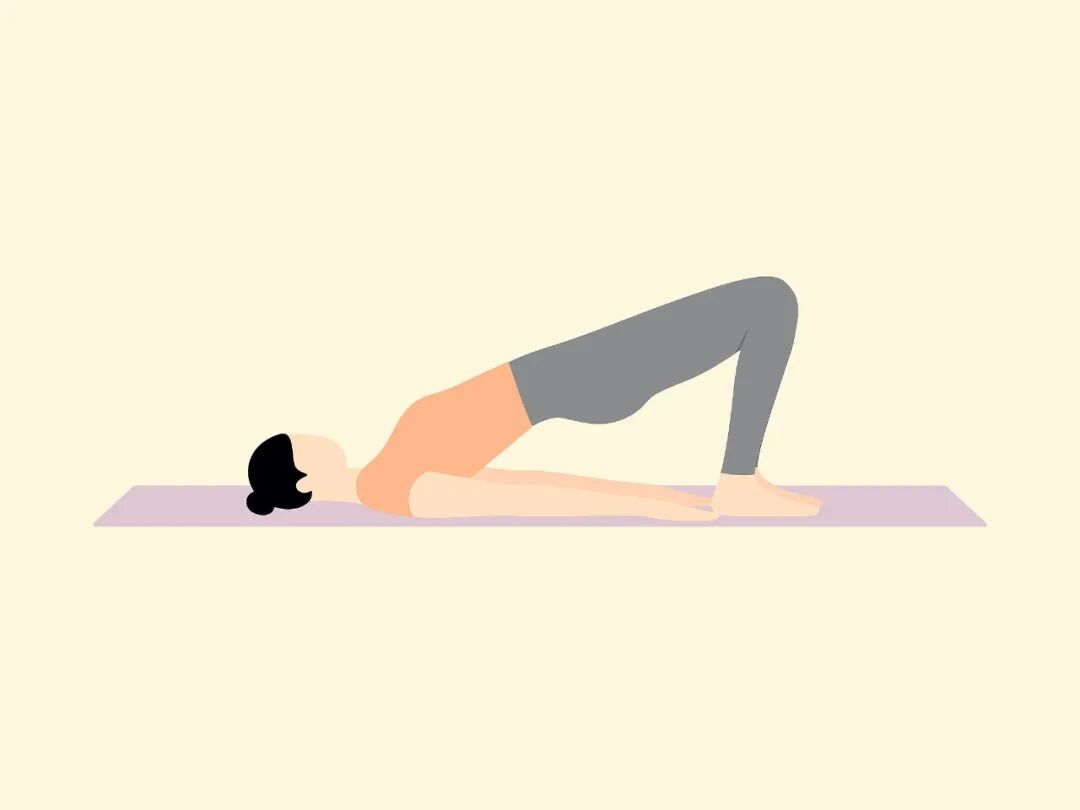 臀桥仰卧躺在地面,双膝弯曲约90度,脚掌平放,双手置于身体两侧。缓慢抬起臀部,直到肩膀、髋部、膝盖形成直线,在顶点收紧臀部和腰腹,保持1-2秒后缓慢放下。