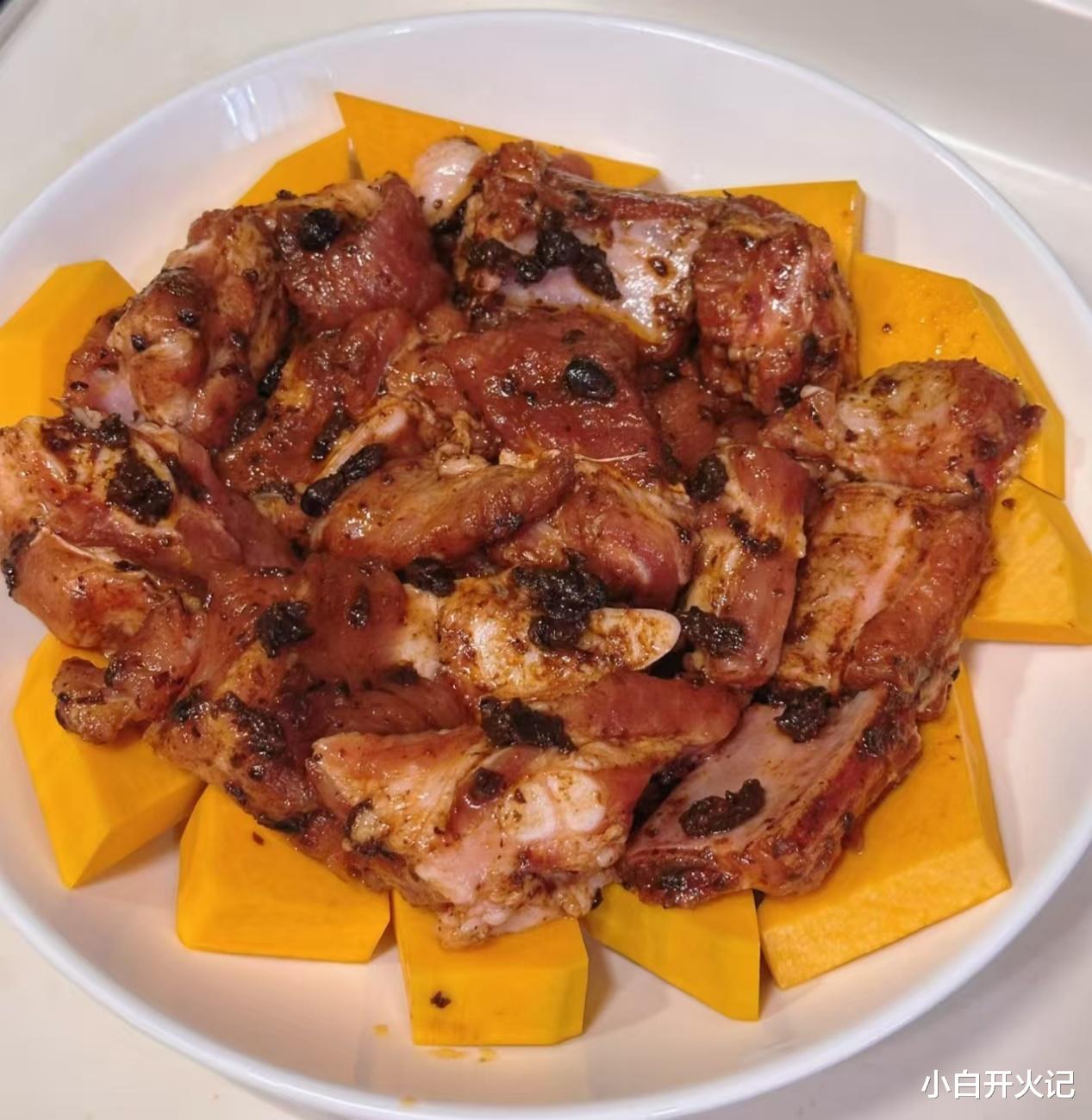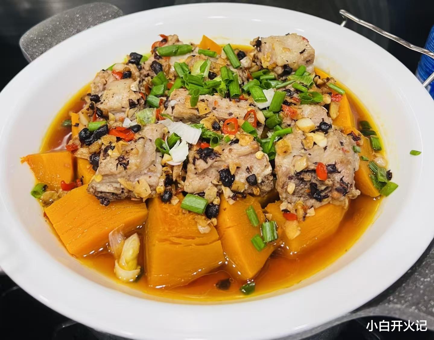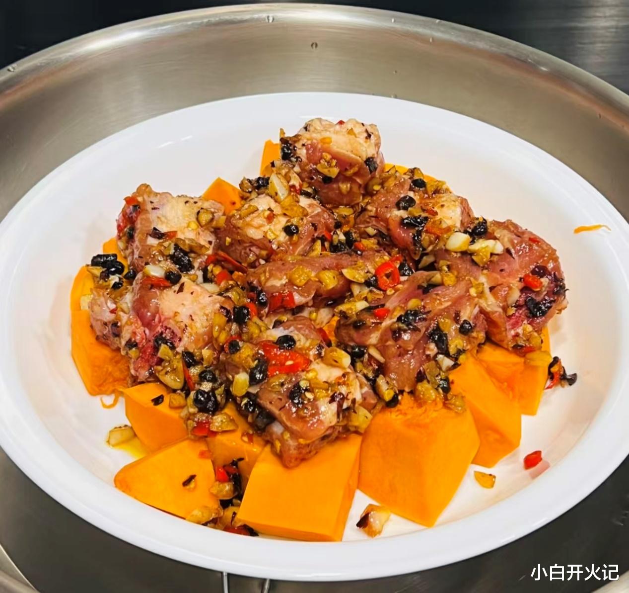 其实这道菜的灵感来自一次厨房事故。那天想做豉汁蒸排骨,发现家里没有芋头,只有角落里躺着一块被遗忘的南瓜。本着不浪费的原则,我抱着试试看的心态切了块南瓜垫底,没想到这一"将就",竟让厨房迎来了高光时刻。