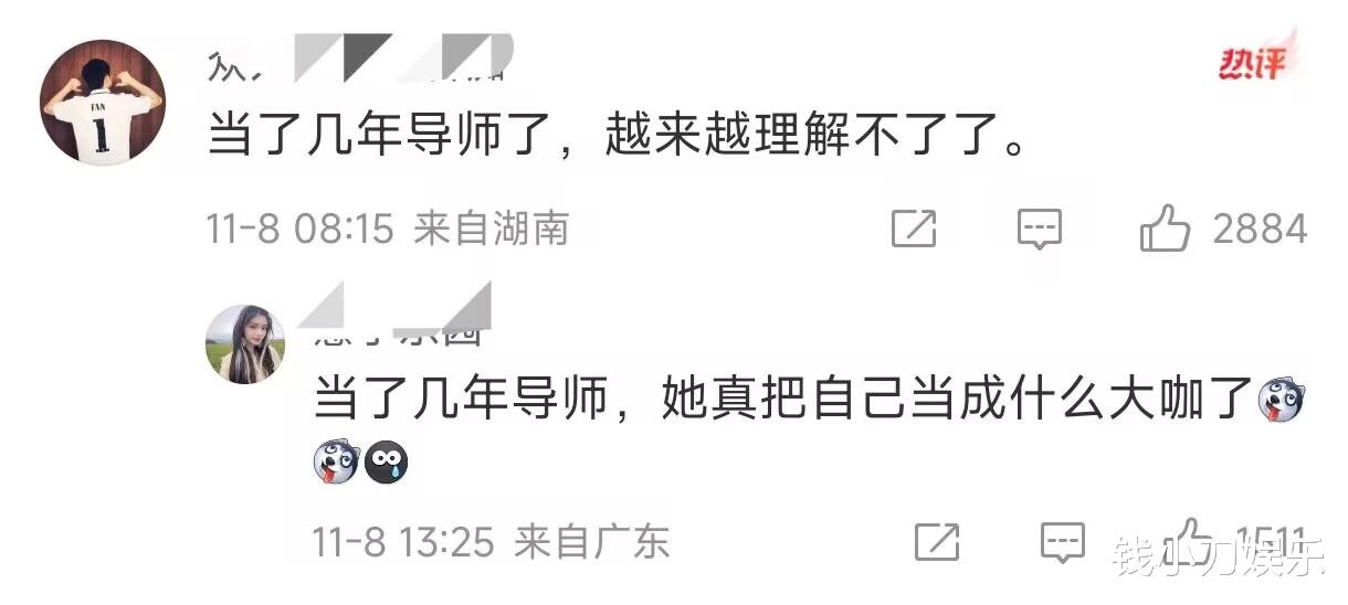 有人嘲讽她,导师当久了,真把自己当大咖了。还有人想起来她在节目中和徐若晗对戏的事情,当时很多人都觉得郝蕾没接住徐若晗这个新人的戏。