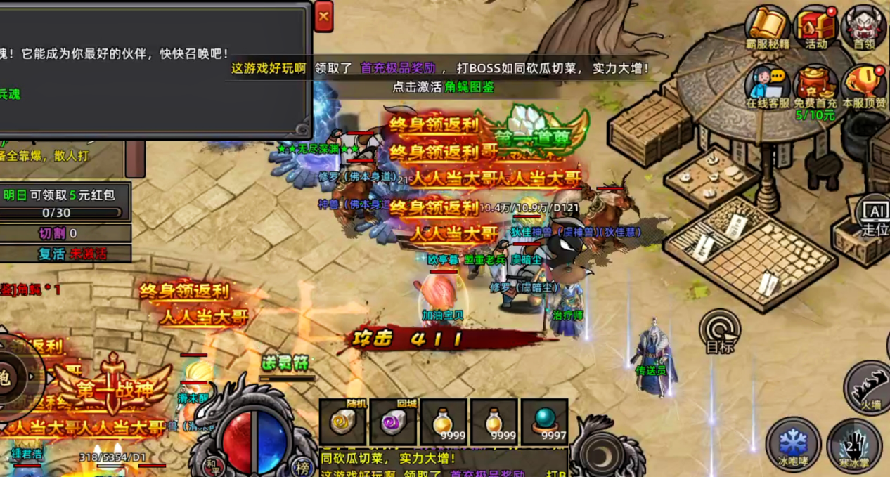 妖王乱世:每日15:30-16:00,击杀奖励传奇装备。