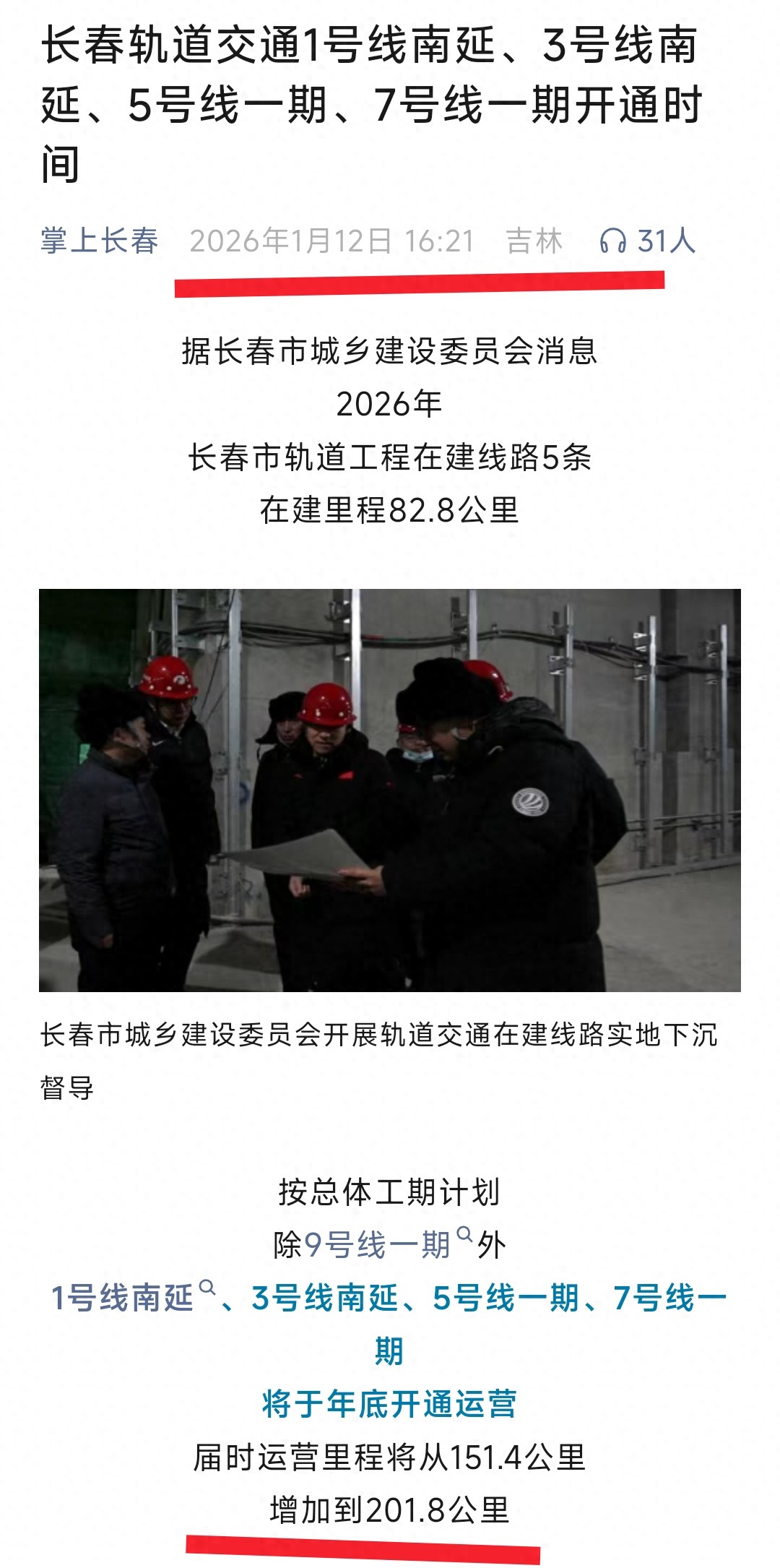 长春地铁建设快马加鞭,在建的地铁线路非常多。从最新消息看2026年长春地铁1号线南延、3号线南延、5号线、7号线将正式通车。届时除了9号线之外,其它地铁线路都会在2026年通车。这样的话长春地铁总里程将从151公里增加到201公里,届时能带来这些蜕变,接下来请听我简单总结。