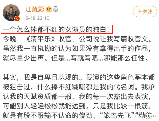 从在剧组被导演训斥“木头”,到发文给粉丝“一脚踢飞”,江疏影的确是逆袭大女主本人。