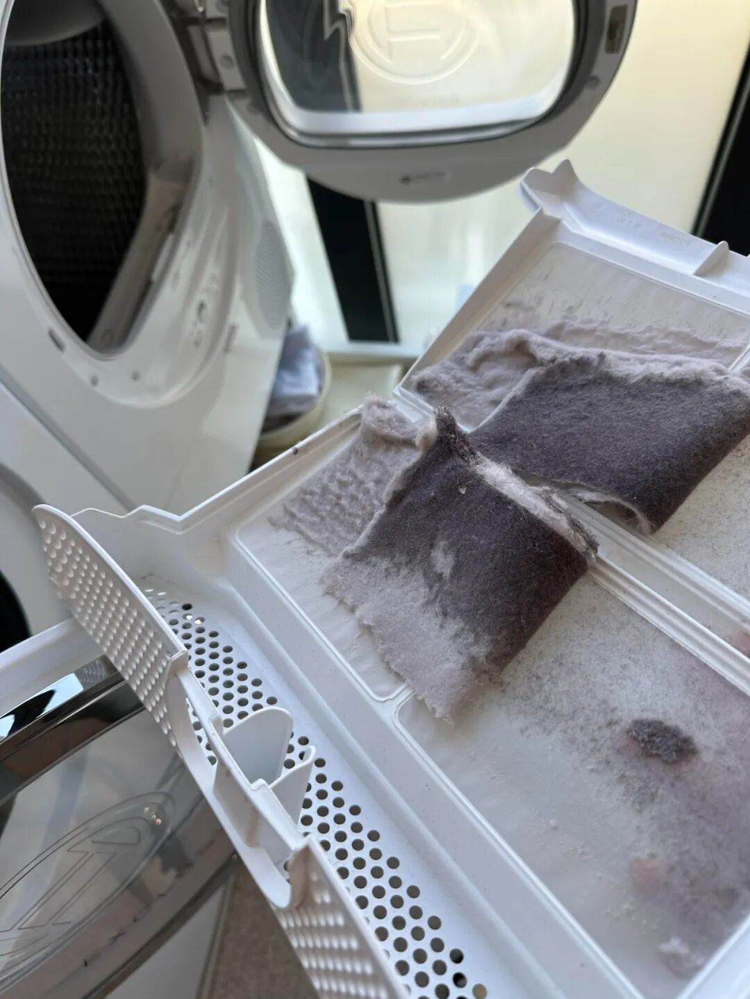 不要买洗烘一体机,要买独立式烘干机,独立烘干机是采用热泵式烘干技术,还能收集毛絮,烘干效率和效果都更出色,有了它,阳台从此解放,你可以摆个休闲椅晒太阳。