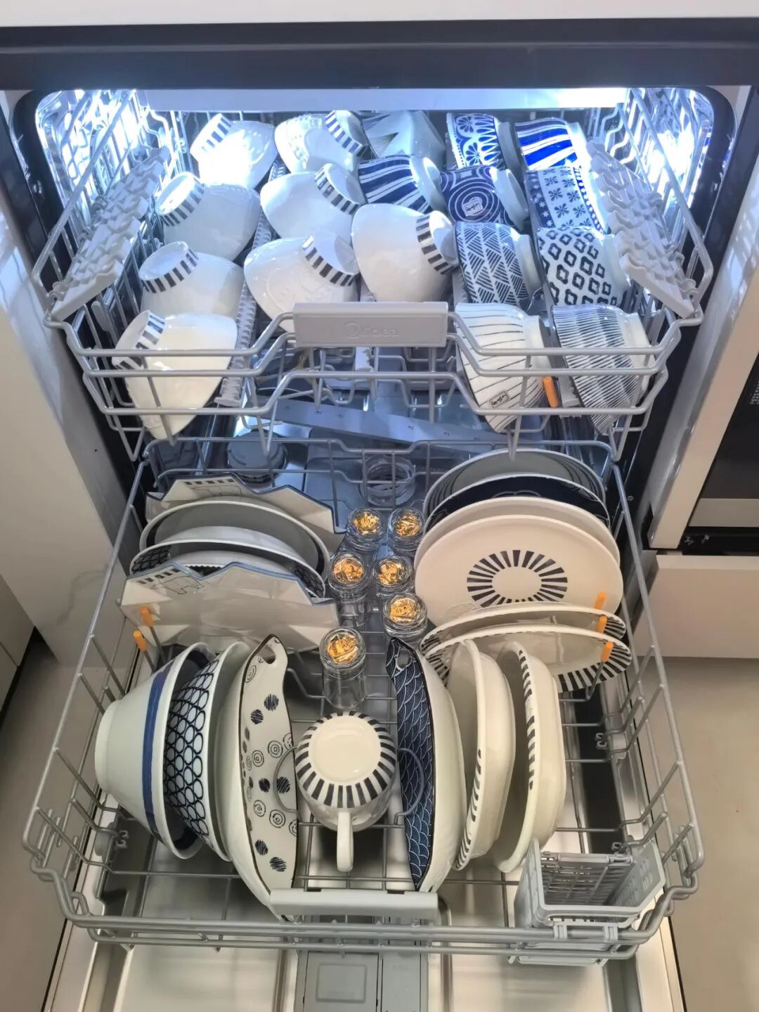 不得不说,洗碗机洗得比手洗干净多了,洗完还能烘干+高温杀菌,用着特别放心。