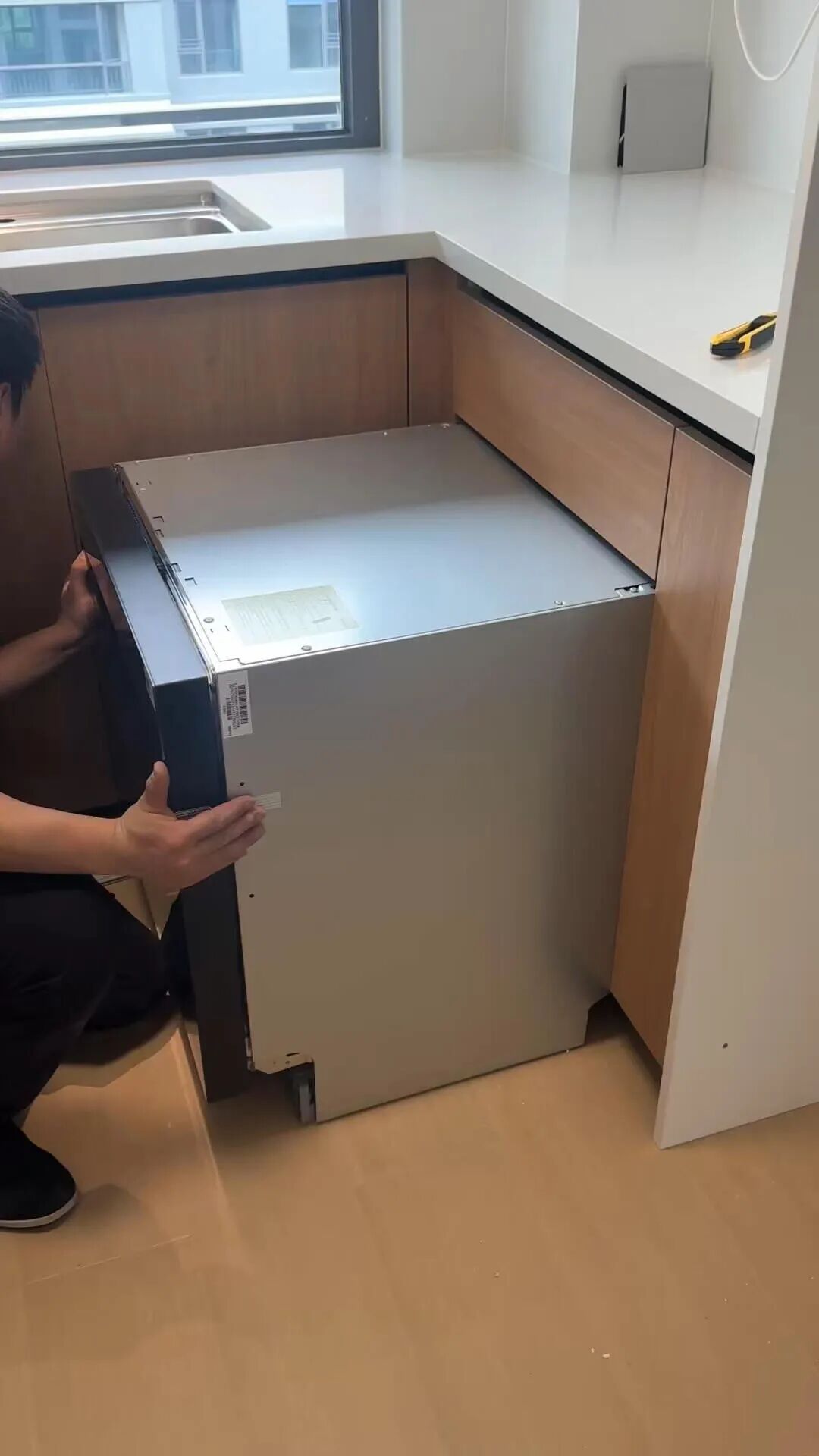 洗碗机在前期规划时就得考虑,得有足够的空间安装,需要预留上水、下水和电源。一定要提前看好机型,把尺寸报给橱柜商家,让他们按要求留好位置。