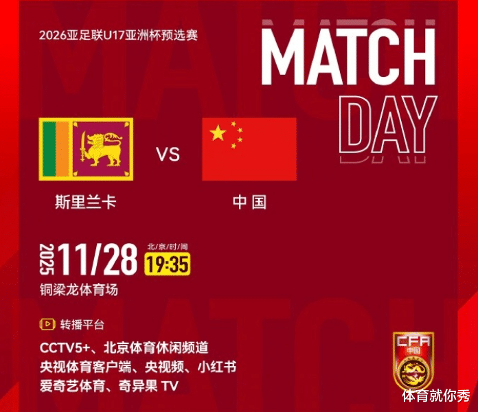 2026年U17亚洲杯的预选赛,今晚19点35分也将进行第4轮的比赛,中国U17男足也将迎来斯里兰卡的挑战,不过双方的实力差距还是非常大的,这场比赛同样的,中国队赢球悬念不大!