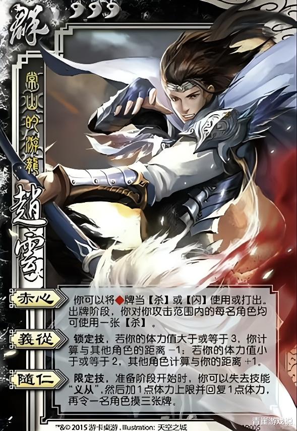 一技能【赤心】缝合了【龙胆】和【龙魂】,可对攻击范围内的角色出杀,效果类似于单人触发的方天画戟,但大家先想想,界SP赵云又哪里来那么多♦️牌用呢?