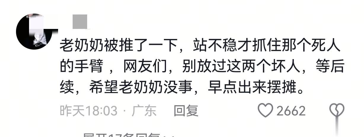 更让人心疼的是,老奶奶倒下前还在说“客人等的急是我的错”。她可能永远想不通:为什么守了半辈子的摊,会因几分钟的等待就被砸烂?为什么勤勤恳恳的手,会被人随意推搡?