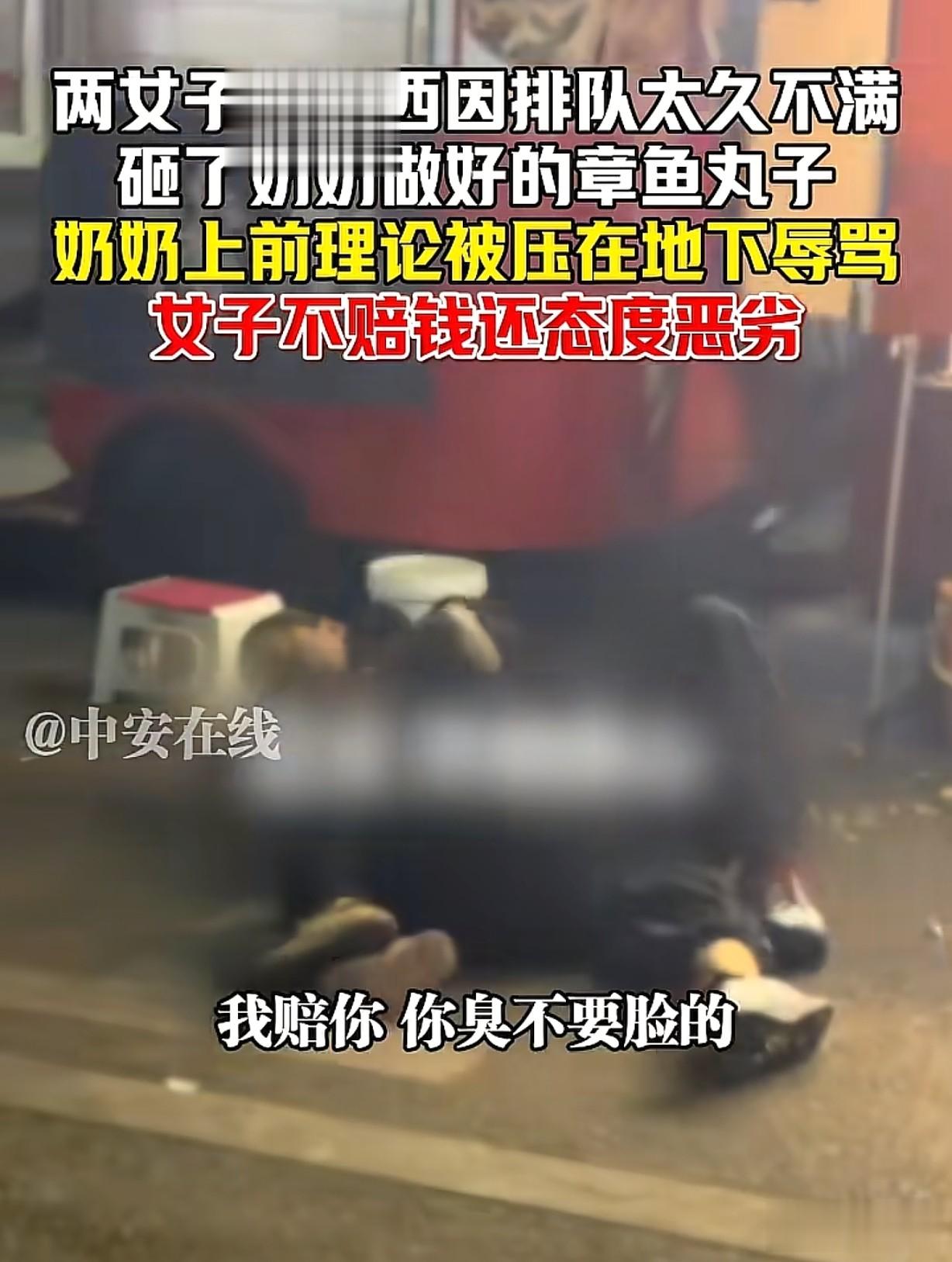 这事真给我整不会了!排队等不及就能砸摊子推老人?视频里女子声音强势霸道,行为嚣张,因为这点小事就怒摔东西,推老人,难道自己家里没老人吗?