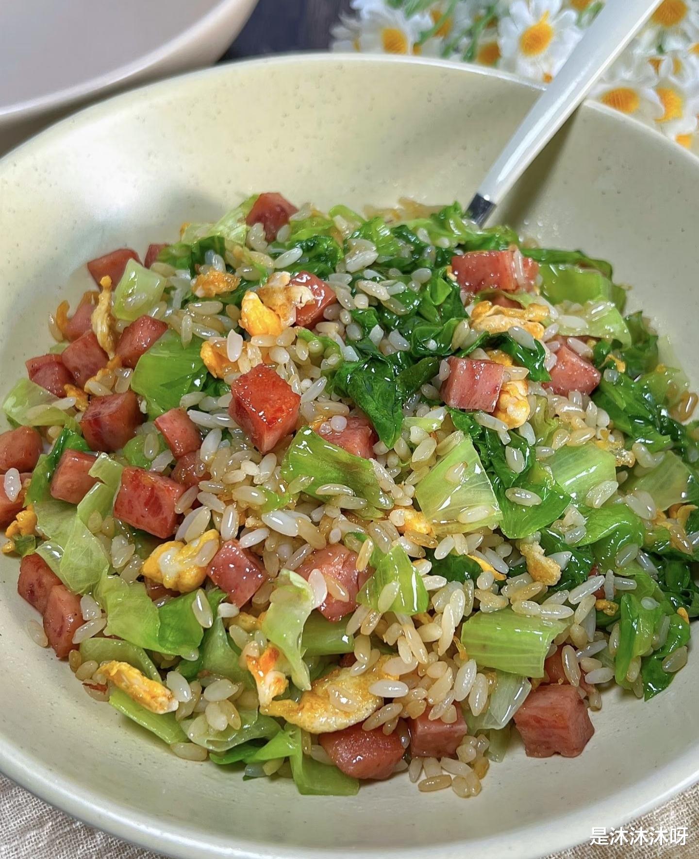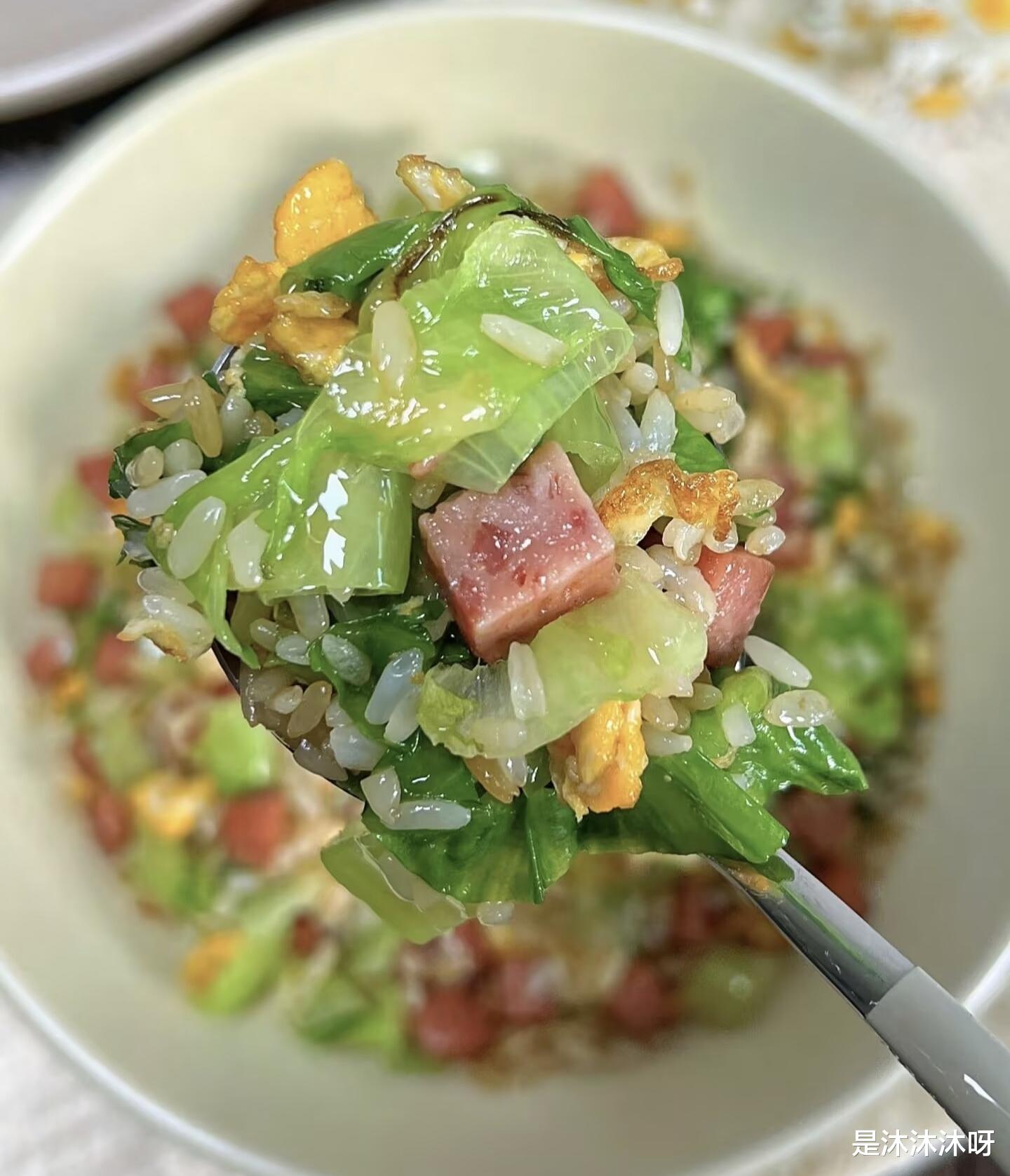 宅家,翻冰箱想找点吃的,结果翻出一碗昨天剩下的米饭,还有一颗翠绿的生菜、半根午餐肉和两个鸡蛋。灵机一动,干脆做个生菜鸡蛋烩饭吧!这道菜看似简单,但真的巨好吃,生菜炒软后会释放出清甜的汁水,裹在米饭上,比单炒米饭更润更香,午餐肉的咸香和鸡蛋的嫩滑更是点睛之笔,吃起来一点不腻,连不爱吃青菜的小朋友都能吃一大碗。