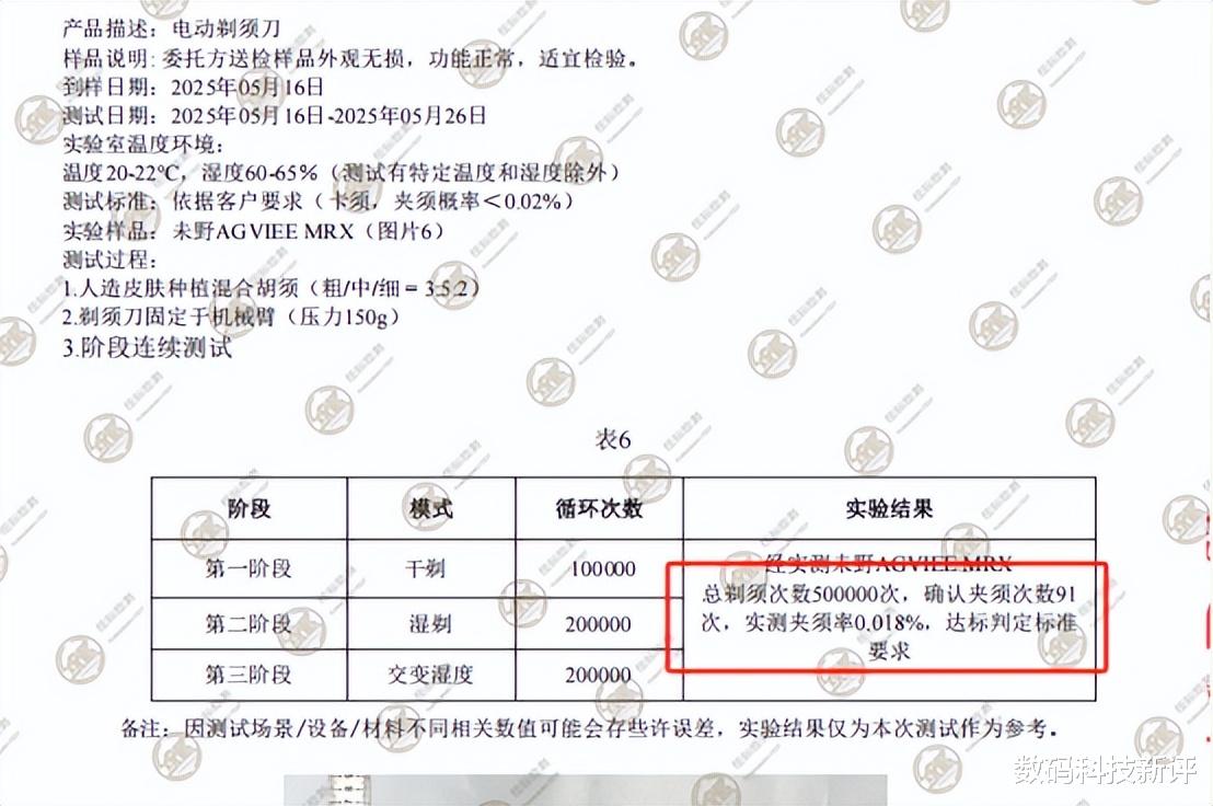 专业机构检测发现未野剃须刀卡须、夹须概率小于0.02%