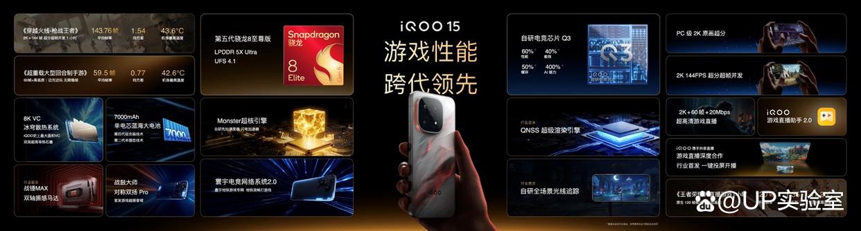 iQOO 15 成为 KPL 官方比赛用机,并支持《王者荣耀》原生 144FPS 模式,双方共建联合实验室,从触控、语音到5G融合加速实现系统级优化。同时,iQOO 还推出深度定制的“王者荣耀十周年典藏版”,在硬件、系统、周边体验上全面呼应游戏主题。