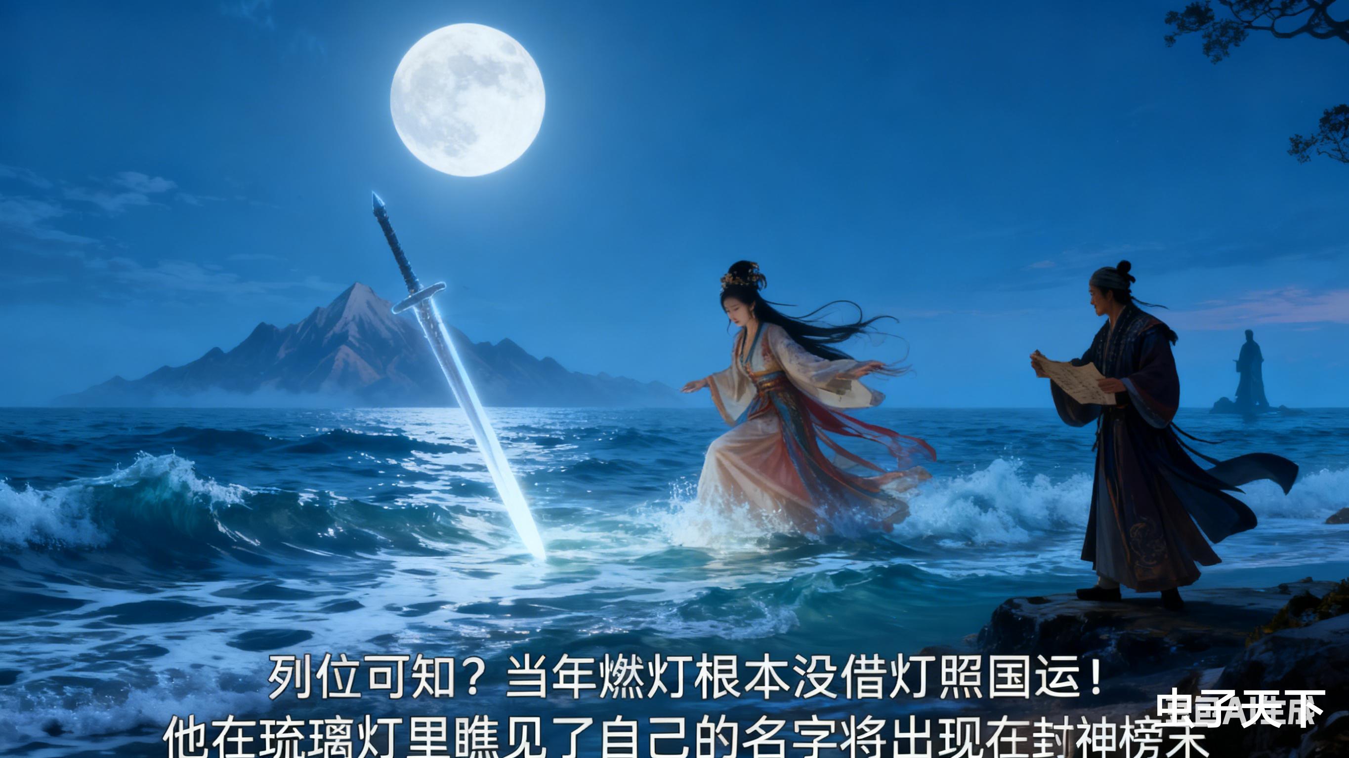 二十年后,陈塘关茶棚里说书人拍醒木:“列位可知?当年燃灯根本没借灯照国运!他在琉璃灯里瞧见了自己的名字将出现在封神榜末位,旁边还映出金灵圣母的陨落之劫……”