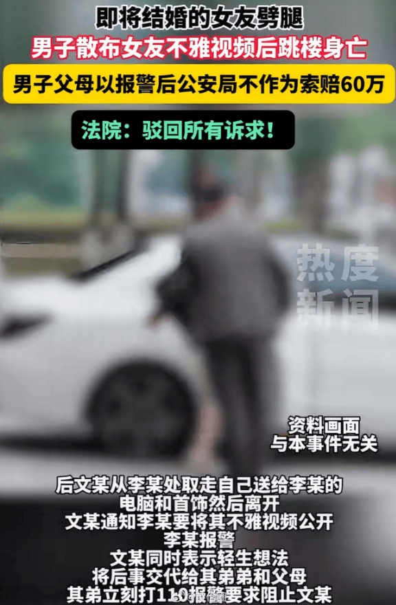 本以为这已经是离谱的天花板了,结果男方父母的操作,直接把离谱程度拉到了新高度。儿子坠亡,固然令人惋惜,但明眼人都能看出来,这件事的始作俑者是他们的儿子自己 —— 先是发现情感纠纷,再是违法散布不雅视频,最后选择轻生,每一步都是他自己的选择。就算要追责,也该先反思儿子的行为,或者针对情感纠纷的另一方提出合理诉求(虽然未必占理)。可这对父母倒好,不怪儿子冲动违法,不怪儿子极端轻生,反而把公安局给告了? 我实在想不通这波操作的逻辑:公安局到底做错了什么?是没拦住他们儿子散布视频,还是没拦住他跳楼?且不说公安局是否有法定职责去阻止这两件事,就算退一万步讲,儿子作为完全民事行为能力人,自己要做违法的事、要放弃自己的生命,难道责任还能算到公安局头上?这简直是蛮不讲理到了极点,让人不得不怀疑:这一家子是不是真的没有基本的法律常识,还是单纯想找个 “背锅侠” 发泄情绪?