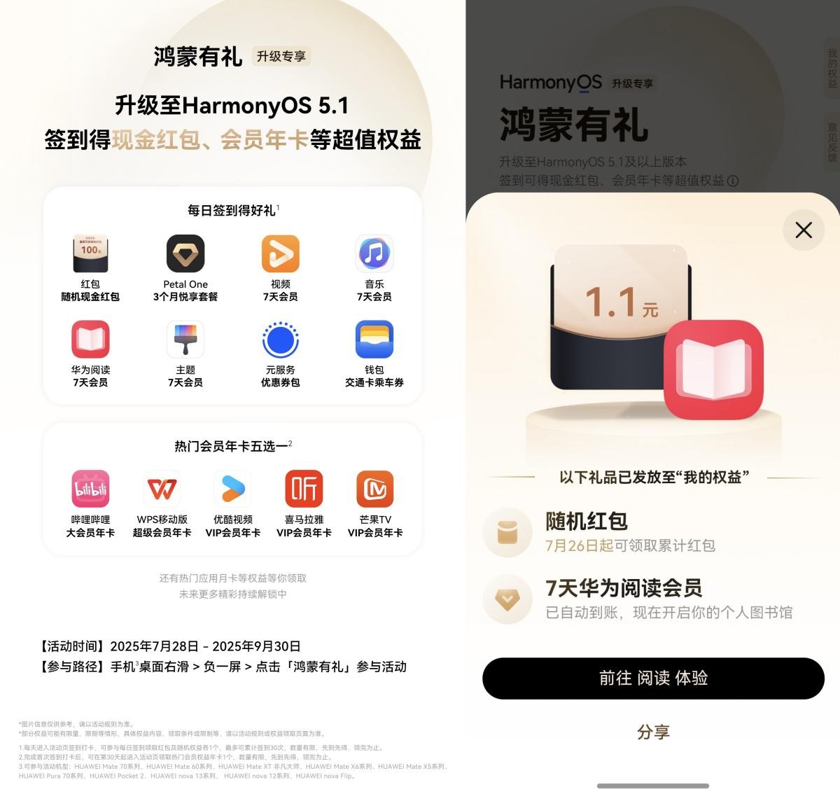 如果你也是“手忙党”“懒癌患者”,或者想解锁隐蔽摸鱼姿势,赶紧打开华为阅读试试这功能!记得先升级鸿蒙 5.1,去负一屏“鸿蒙有礼”签个到,会员福利领到手软,用眼神“读”书的快乐,试过就再也回不去了~