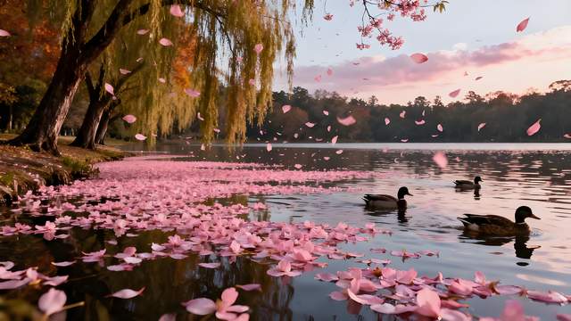 麓湖公园的秋,是藏于都市的 “粉色浪漫” 秘境。聚芳园内高大的异木棉树,是秋日里最瞩目的地标。饱满的粉色花蕾在晴空下尽情舒展,远远望去,宛如粉色云霞垂落枝头;近前细看,花瓣轻轻颤动,空气中都弥漫着香甜的气息。环湖步道蜿蜒曲折,粉色花瓣随风起舞,飘落在游人肩头,引得人们纷纷驻足,用镜头定格这美好的瞬间。阳光透过花枝,在地面洒下斑驳光影,湖面倒映着粉花与蓝天,偶有白鹭掠过水面,荡起的涟漪将花影揉碎又重新拼凑。临近傍晚,夕阳为花瓣镀上一层暖橙色的光晕,与远处的摩天轮相互映衬,构成了秋日里最温柔的画面。