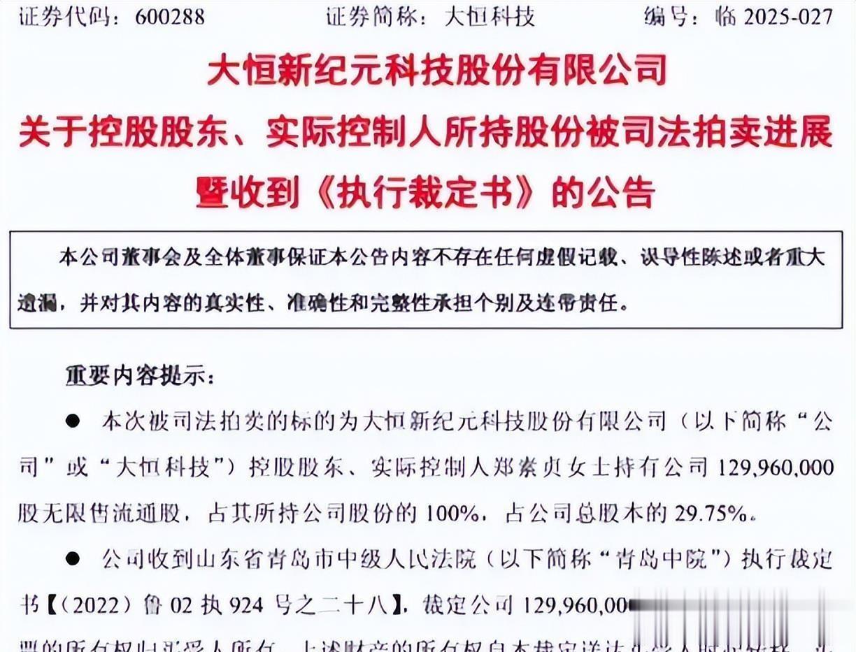 2025年7月,大恒科技的股权拍卖率先启动。