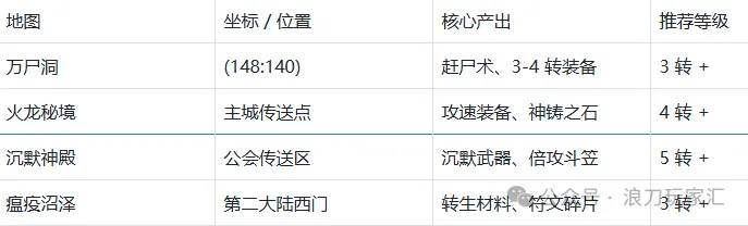 关键玩法:万尸洞杀 10 只「腐肉尸王」学赶尸术;主城「二丫」领主线解锁赞助特权;火龙秘境「烈焰主宰」(3 人组队)掉攻速戒指,沉默神殿「沉默教主」(戴抗沉默项链)掉倍攻斗笠