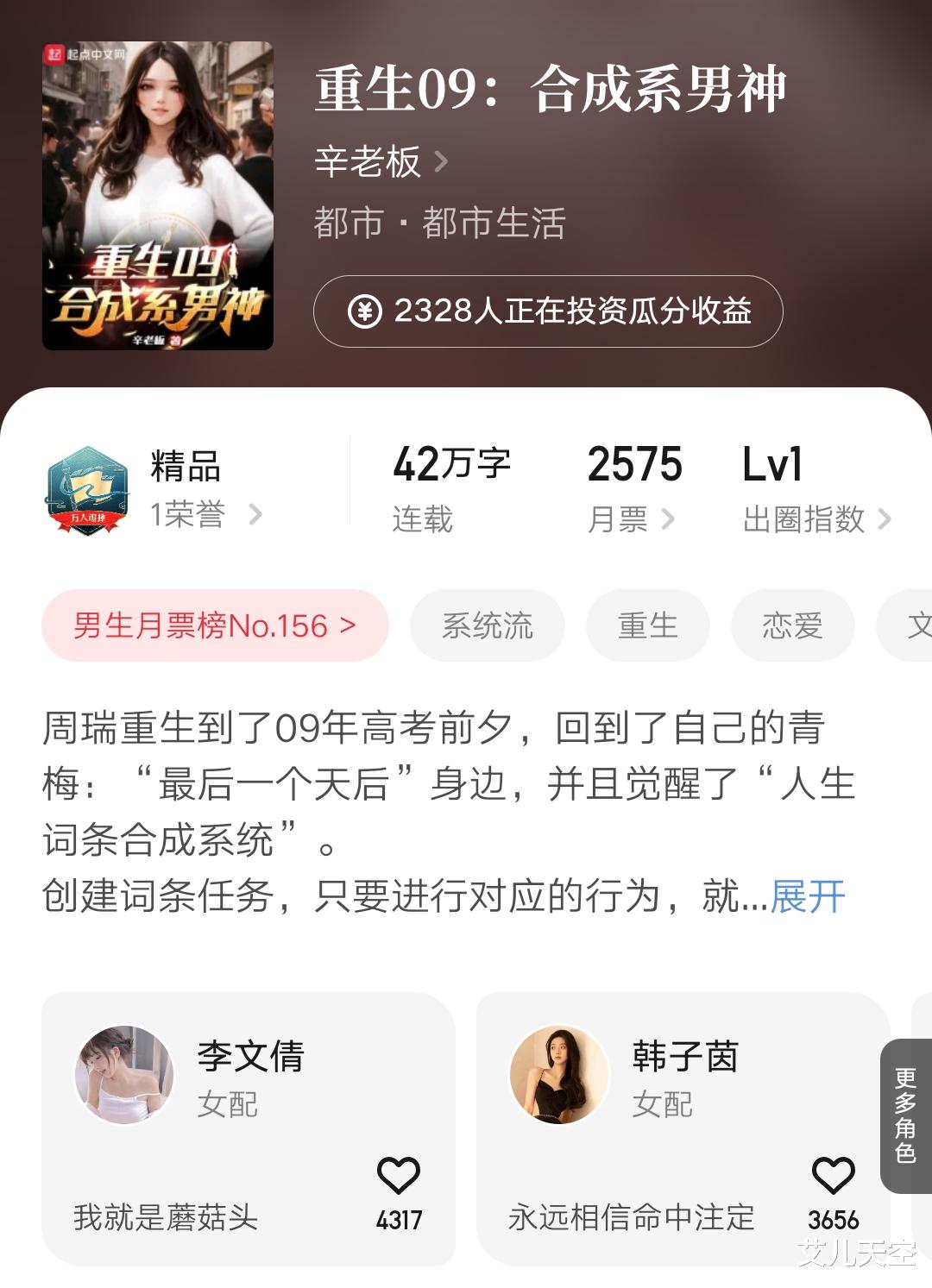 3、《重生09:合成系男神》42万字连载中
