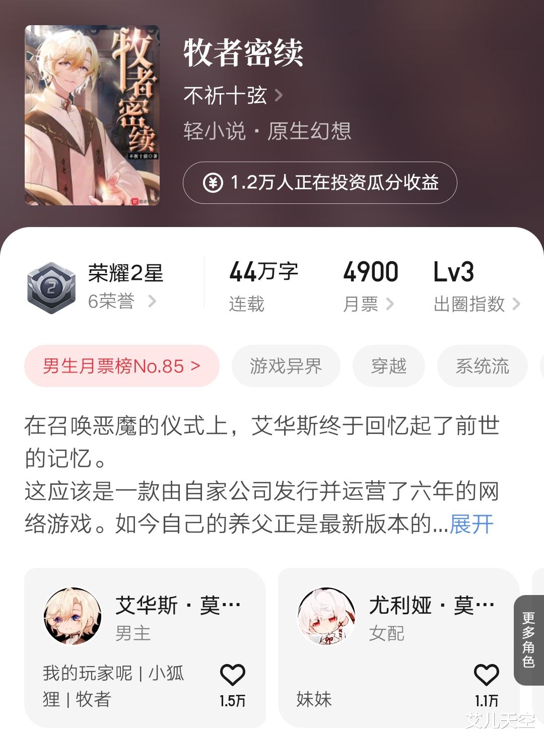 月初上架首订一万四,目前均订看着在两万五以上,作者也有意用这本小说去冲击一下明年的大神约。