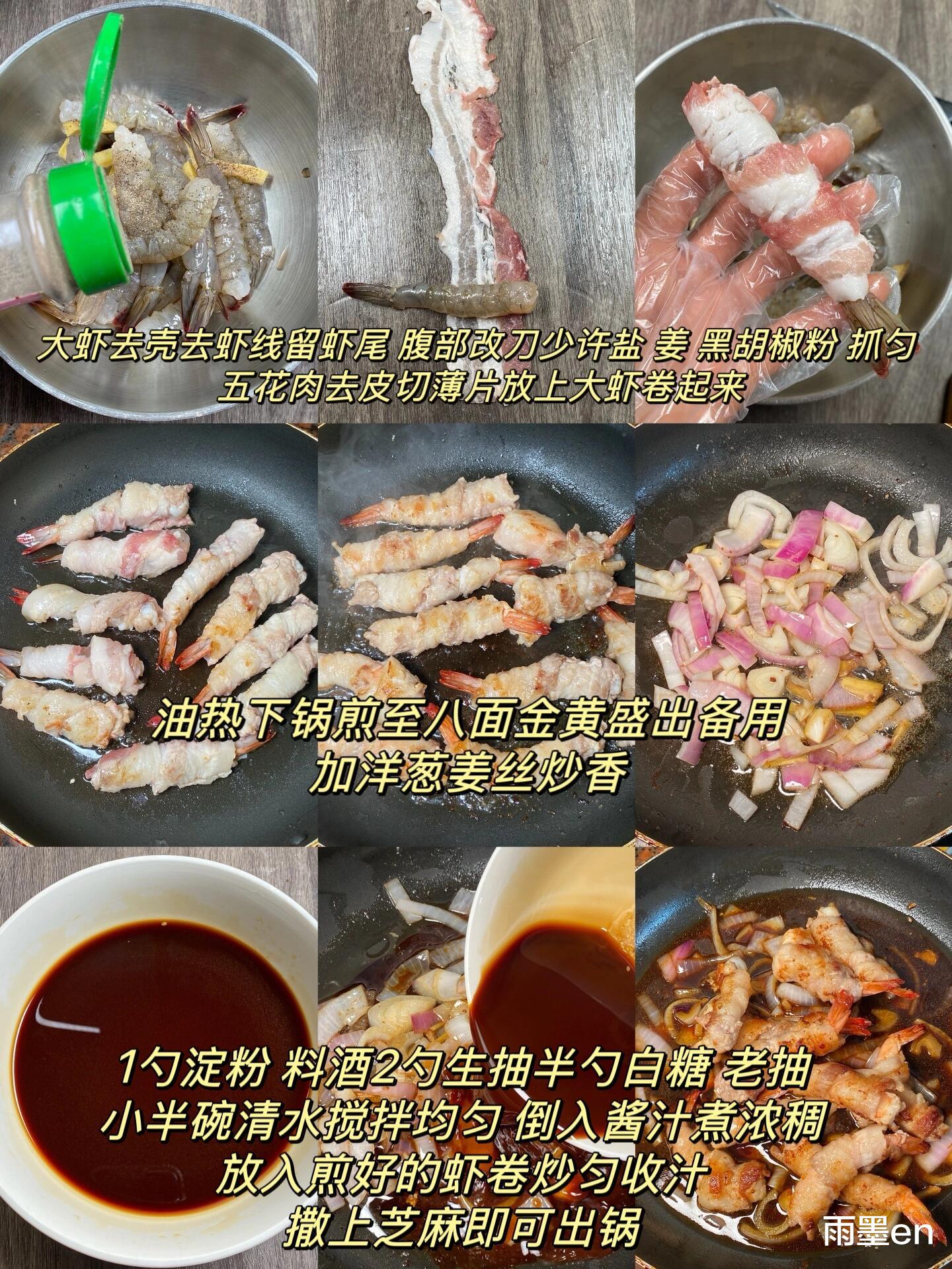 做这道菜的核心技巧先划重点,记住这几点绝对不翻车!首先选五花肉,一定要挑三层肥瘦相间的,太厚会腻、太薄易破,放进冰箱冷冻15分钟再切,能轻松片成2毫米厚的薄片,卷虾仁时不粘不散,这是成功的第一步!然后处理虾仁,300克鲜虾去壳去虾线,用厨房纸吸干表面水分(这步别省,不然煎的时候会溅油),加少许盐、白胡椒粉和1勺玉米淀粉抓匀,静置5分钟,虾仁会更弹牙,还能锁住水分。