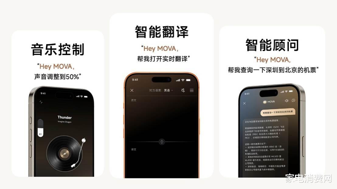 MOVA TPEAK Clip Pro 通过端云协同 AI 技术,让耳机从单一的音频设备升级为真正的智能终端。耳机支持左右耳自适应识别,用户随手拿起即可佩戴,系统会自动检测佩戴状态,无需区分左右耳,使用更加直观自然。通过一句“Hey MOVA”,用户无需掏出手机,即可完成音乐与音效控制、自然语音交互问答以及多种语言的实时翻译。
