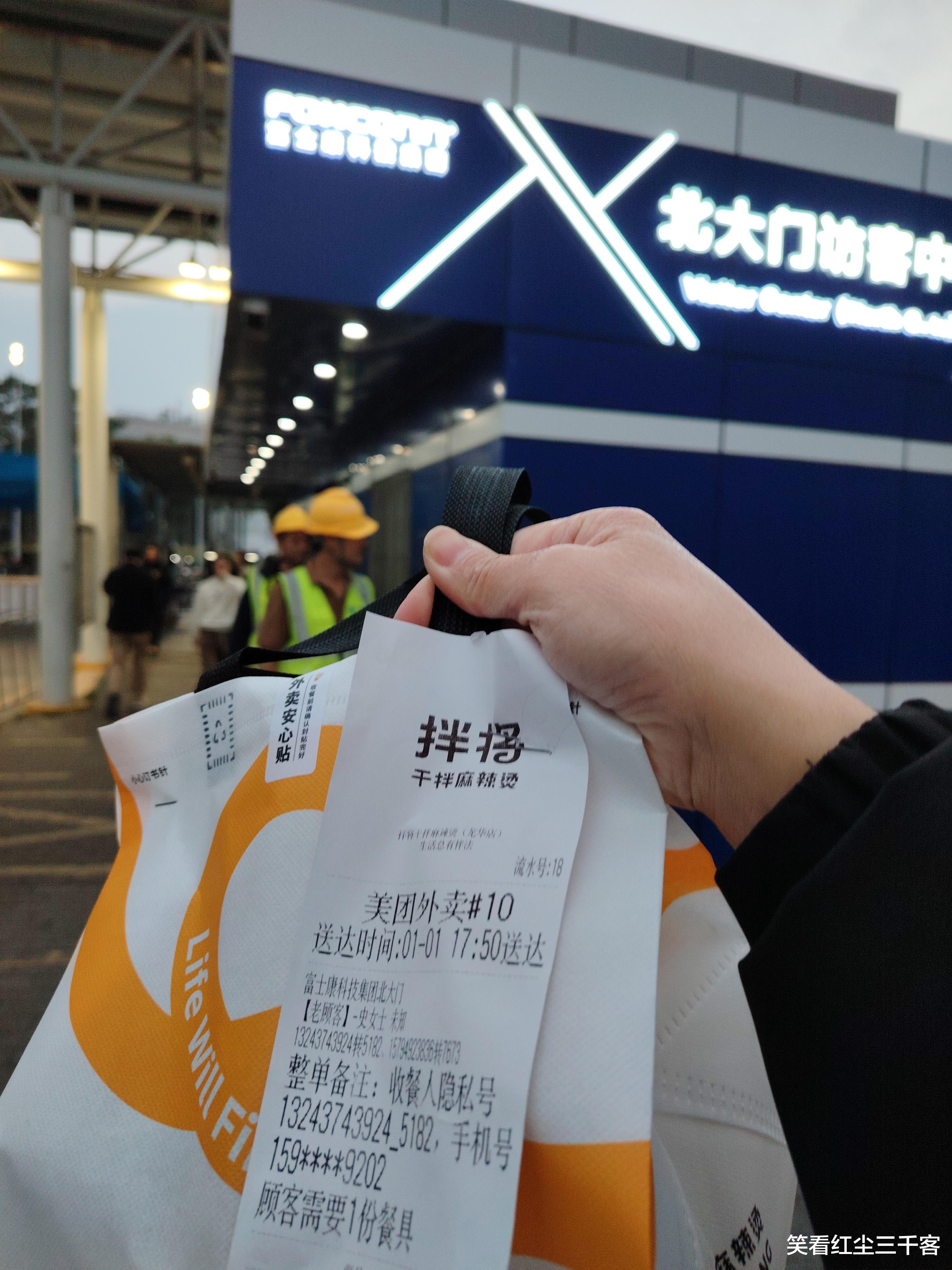 上一次来富士康北大门送外卖的时候,打电话给顾客,还要原地等候几分钟,等顾客出来,当面交付,因为北大门这边没有任何可以暂存外卖的地方,所以等待真让人等的焦急,于是后面,碰到这边的订单就很谨慎了,尤其是午高峰时,一般这里的订单是直接拒掉的。