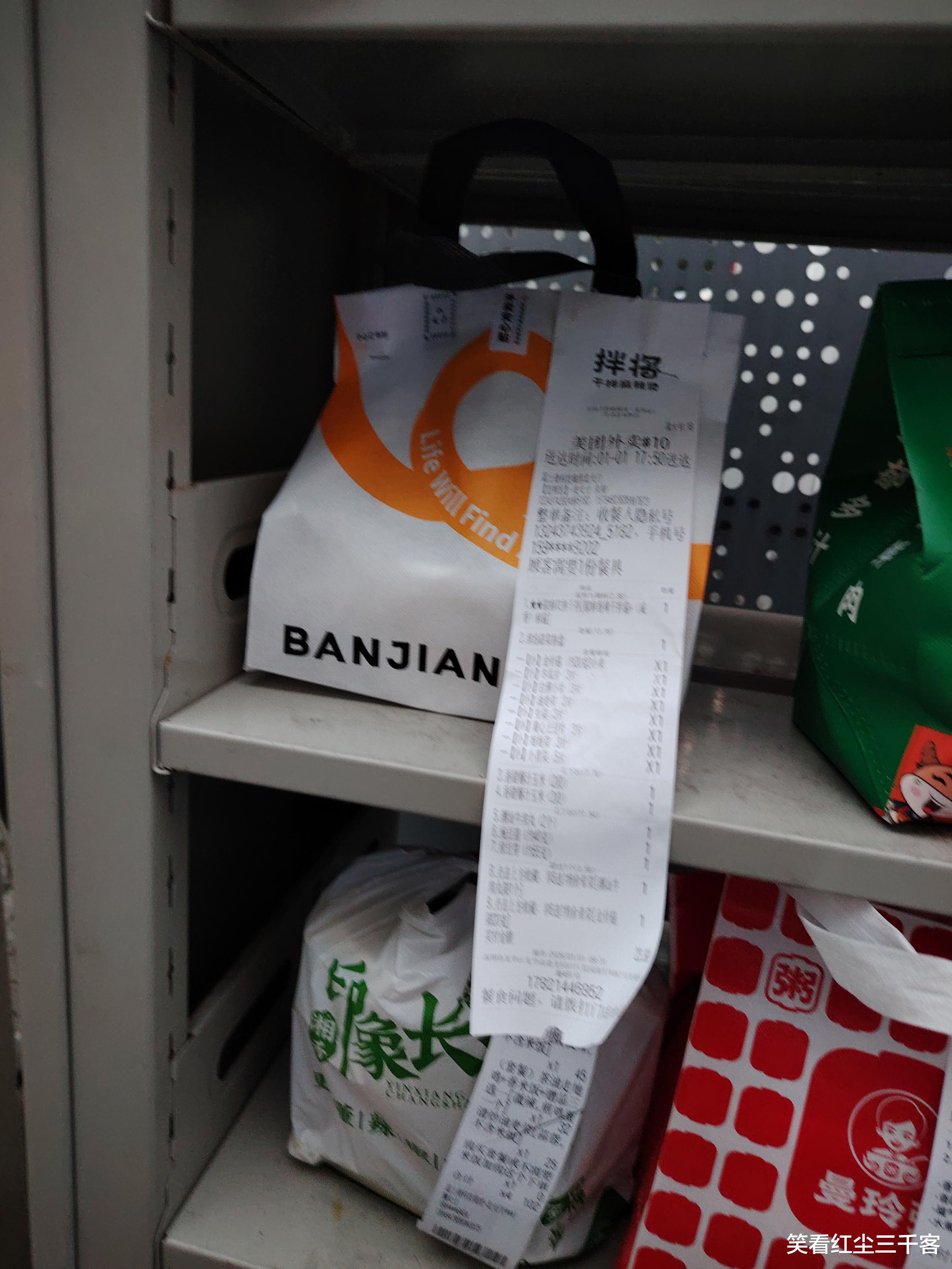 这次接到北大门的外卖订单正好是闲暇时,可以不用那么慌乱,总结上次等待的经验,这次,快到的时候就打电话给顾客了,顾客说直接放在外卖柜,我还在诧异,北大门也有外卖柜啦?真是个稀罕事!