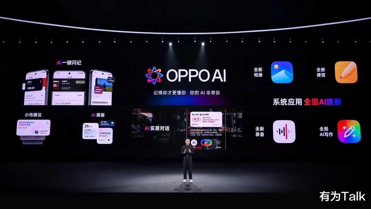 同时,OPPO AI也为系统应用赋能全新体验。AI录音摘要功能不仅支持实时分角色转写,还能进行AI摘要,轻松摘出好文案;全新的系统级全局AI写作支持更多风格化写作以及PPT与脑图的生成,成为真正的生产力神器。此外,便签全新块编辑、AI人像补光等功能,让高效无处不在。