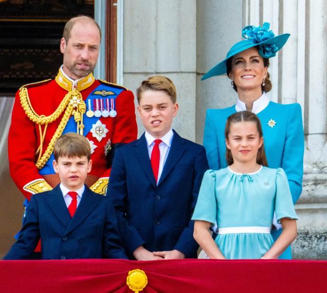 尽管凯特未能出席皇家赛马会,但威廉生日前一周,整个家庭集体亮相了伦敦皇家阅兵式,共同庆祝英国君主官方生日。这是他们连续第三年参与这一高规格的王室庆典。阅兵式上,凯特身着淡蓝色凯瑟琳·沃克定制外套裙,头戴饰花礼帽,发髻优雅挽于一侧。年幼的路易王子在阳台观看皇家空军飞行表演时尤为活泼,向人群频频挥手,甚至在其他家人停止致意后仍继续动作,直到哥哥乔治轻拉他的手臂示意。这一童趣瞬间被镜头捕捉后,迅速成为社交平台上的热议话题,不少网友称赞小王子“俏皮可爱”,“为庆典增添了别样魅力”。