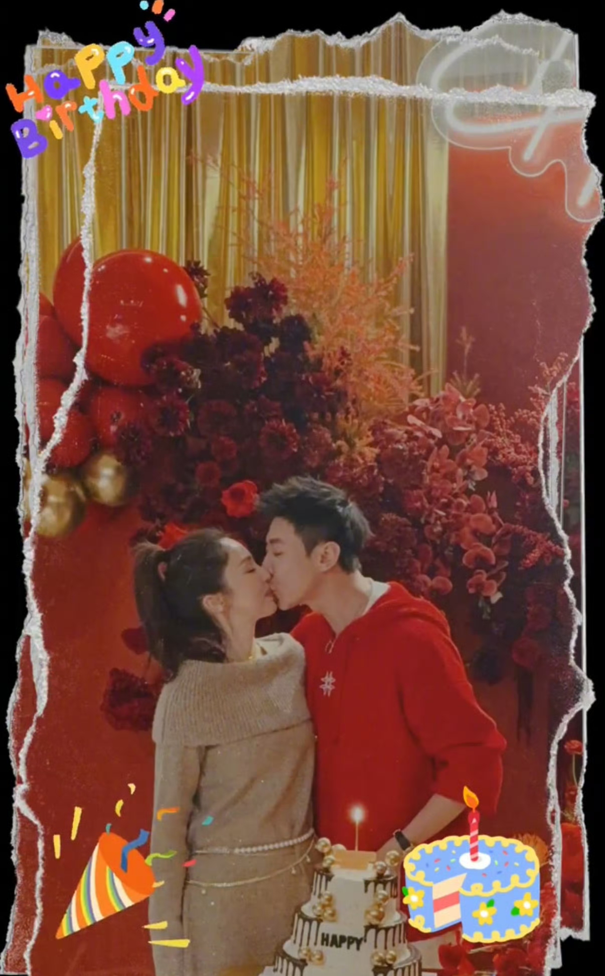 大概是之前婚礼的时候跟小酒窝说话被误以为亲小酒窝,被网友骂怕了吧!所以这次生日他也没有特意秀恩爱。