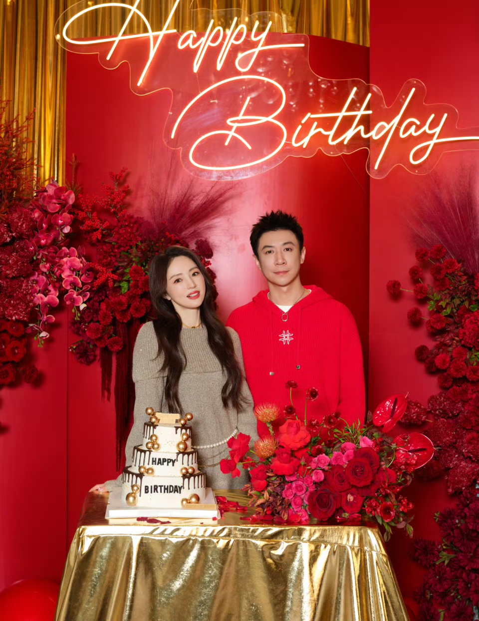 张维伊的生日,夫妻俩的合照肯定是不能少的了,两个人规规矩矩的拍照,董璇很松弛,张维伊看着就正经多了。