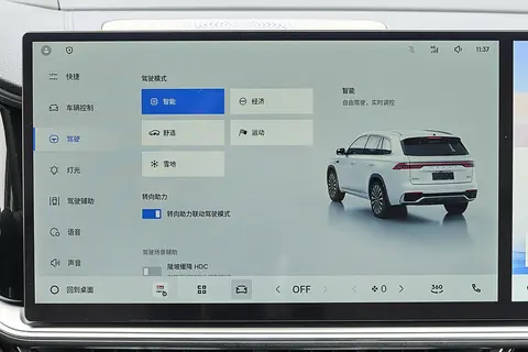 底盘和四驱也很加分。CMA 线控底盘配合 AI 数字底盘,前后配重接近 50:50,开着特别稳。尤其是 AI 数字底盘和CCD 可变阻尼悬架搭在一起,能根据路面毫秒级调悬架软硬,走坑洼路或泥泞小道,大部分颠簸都能滤掉,不会有明显震动传到车里;切到运动模式,过弯时支撑性更好,驾驶质感扎实。要是偶尔想去户外,博格华纳第六代电液式四驱系统就派上用场了,50:50前后扭矩分配,0.03 秒就能响应,不管是城市湿滑路,还是轻度越野路段,都能稳稳的,爬坡和脱困能力也不错,日常开着既有底气,偶尔去 “撒欢” 也没问题。