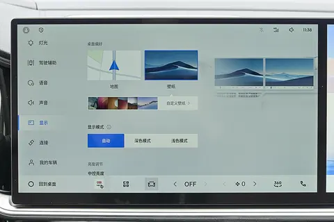 走进车内,鸣沙流金的环保麂皮内饰第一感觉就是细腻,棕色的色调搭配软质包裹材料,坐进去能明显感觉到包裹感,扶手、中控台这些经常接触的部位都很亲肤,那种轻奢感不是靠堆装饰来的,而是材质本身的质感。中控台的月泉玉樽水晶挡把是个小惊喜,通透度不错,转动时手感顺滑,日常换挡时不经意间就能注意到这份精致。还有可随驾驶模式智能变化的256色氛围灯,晚上开车时,光线柔和不刺眼,能缓解不少驾驶疲劳,新增的50W无线快充也很贴心,早上上班手机放上去,到公司基本就能充不少电,不用再纠结数据线怎么放才不碍事。