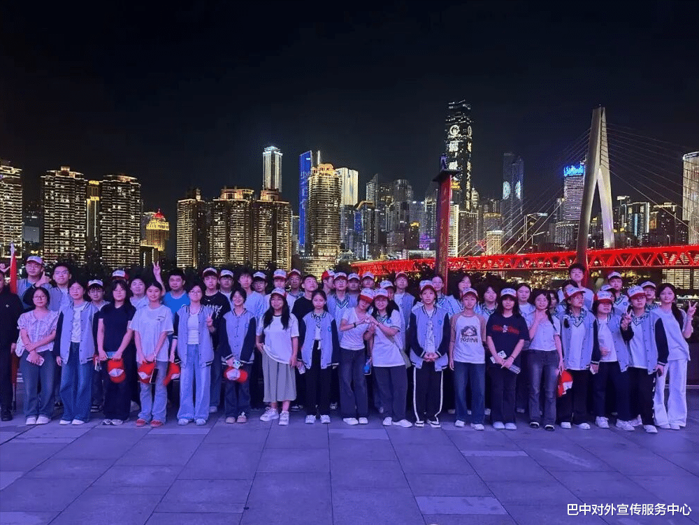 当晚,在洪崖洞开启夜间文化研学。在这里,建筑与美学、历史与地理实现深度融合:学生们仔细观察吊脚楼的榫卯结构,解析其适应山地地形的建造智慧,了解洪崖洞从传统民居到文化地标的历史变迁;结合重庆“山城”“江城”的地理特征,导师讲解地形与城市发展的关联,培养学生的地理思维;当夜幕降临,洪崖洞流光溢彩的赛博朋克夜景映入眼帘,学生们拿起画笔写生,捕捉建筑线条与灯光色彩的碰撞之美,在艺术创作中提升审美能力与创意表达。