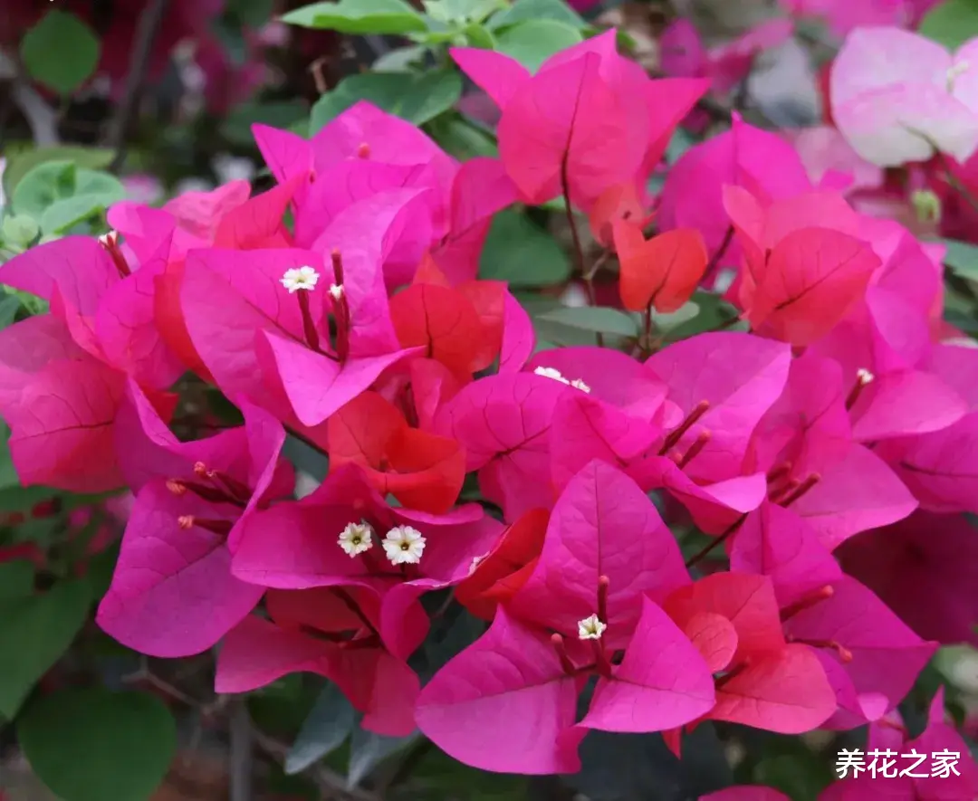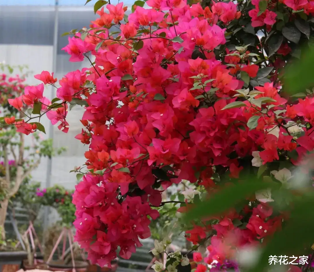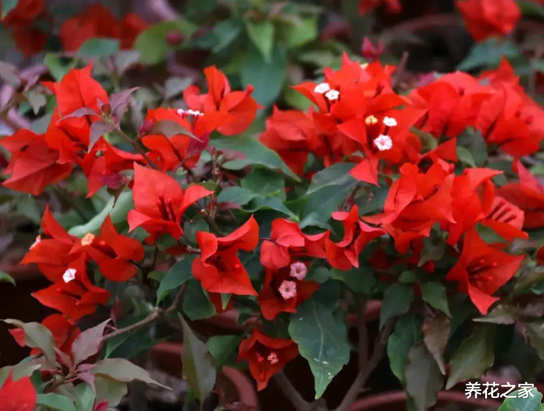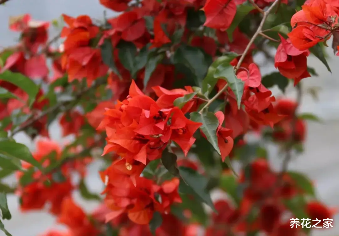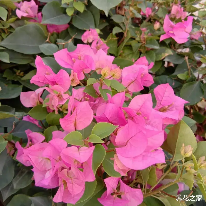 水红也叫同安红。它的颜色比较鲜艳,看起来比较喜庆,是很多养三角梅的花友都会选择的一个品种,它主要的特点是花量大,花期长。