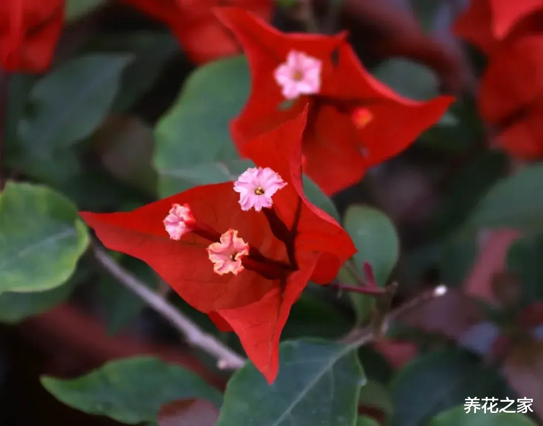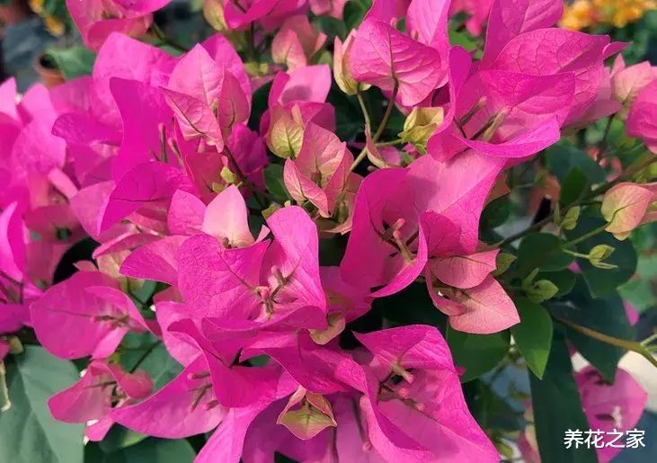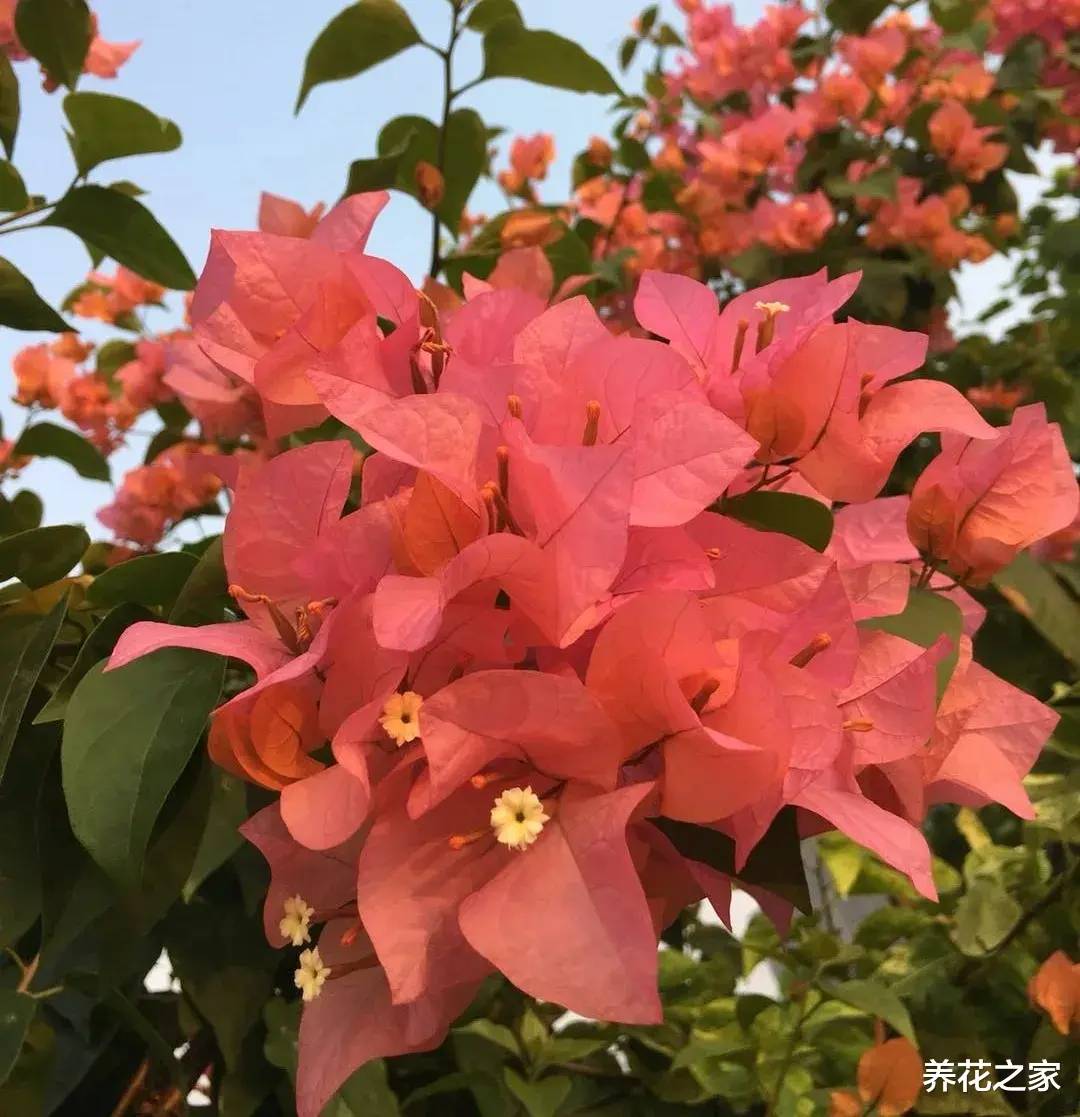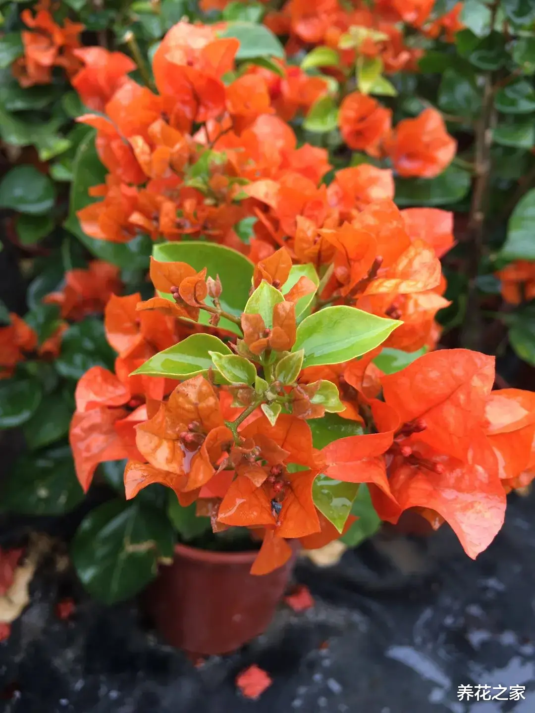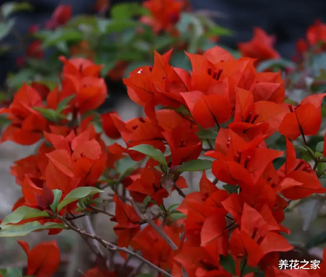 水红也叫同安红。它的颜色比较鲜艳,看起来比较喜庆,是很多养三角梅的花友都会选择的一个品种,它主要的特点是花量大,花期长。