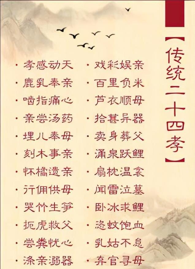 不过,二十四孝这个说法,出现的却很晚。按照目前史学家们的考证,这个说法,最初是出现在元朝。