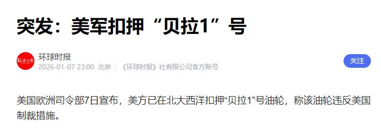 油轮被截:公海变成了私人领地?事情还没过劲儿,又一出戏紧接着来。1月7号,一艘悬挂俄罗斯国旗的油轮,原名“贝拉1号”,后改名“水手”号在北大西洋公海航行,突然被美军特种部队登船,英国那边还提供了后勤支援,这事儿一下子又把俄罗斯拖进了局。