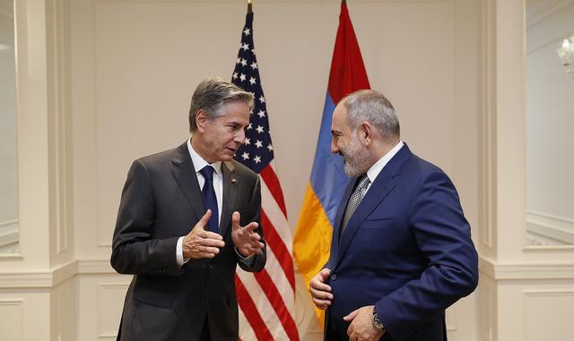 亚美尼亚总理帕什尼扬访问美国,与美国国务卿布林肯交流