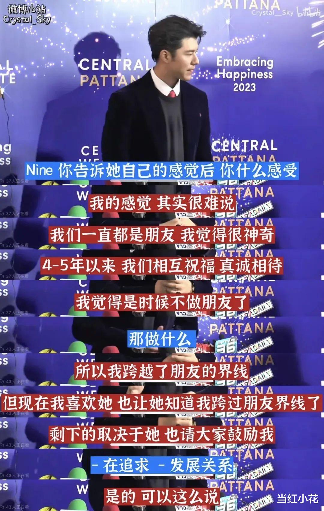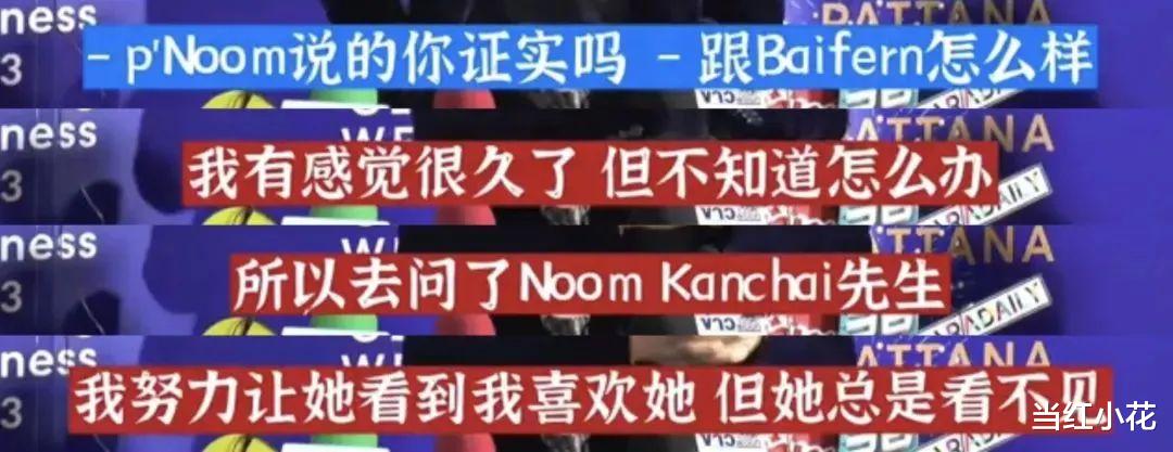 也不知道是谁给的勇气。小九居然当着一众媒体的面承认自己在追求Baifeen,“我努力让她看到我喜欢她,但她总是看不见。”