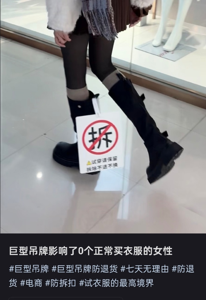 吊牌的增大,表面上是商家对退货党的反击,实际上却映射出电商生态中某种信任的缺失。当我们无法互相信任,只能依靠越来越大的物理标识来划定权责时,交易成本自然会水涨船高。