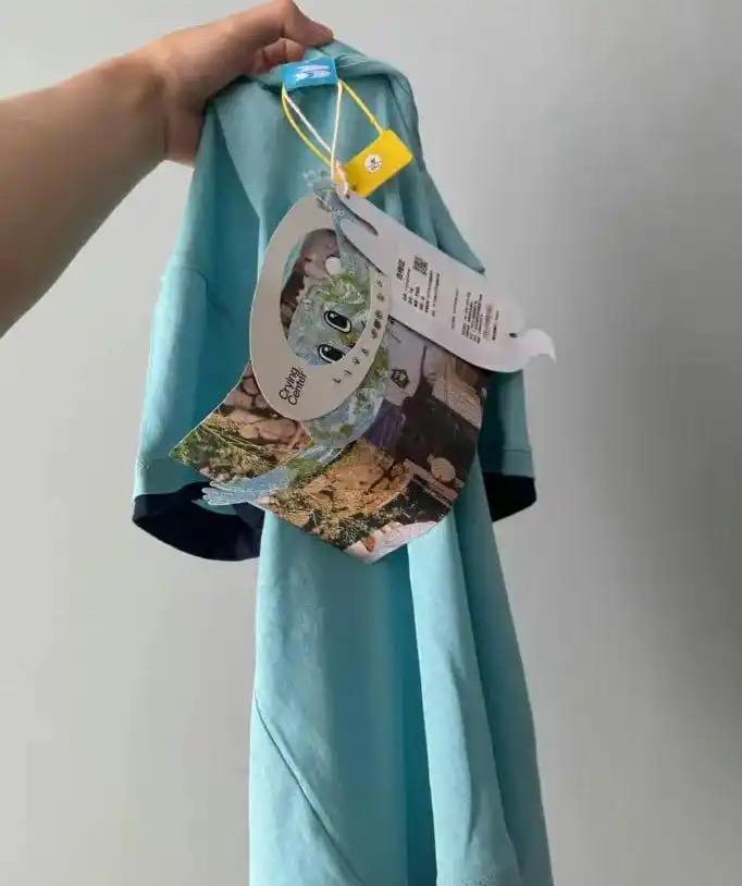 杭州的林女士分享了一次令她哭笑不得的购物经历:她网购的一件薄款针织衫,其吊牌几乎与衣服前襟一样大,吊牌的重量甚至导致衣服在悬挂时变形。