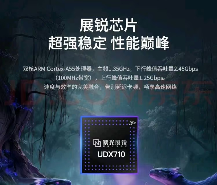 设备搭载紫光展锐UDX710芯片,双核ARM Cortex-A55处理器主频1.35GHz。