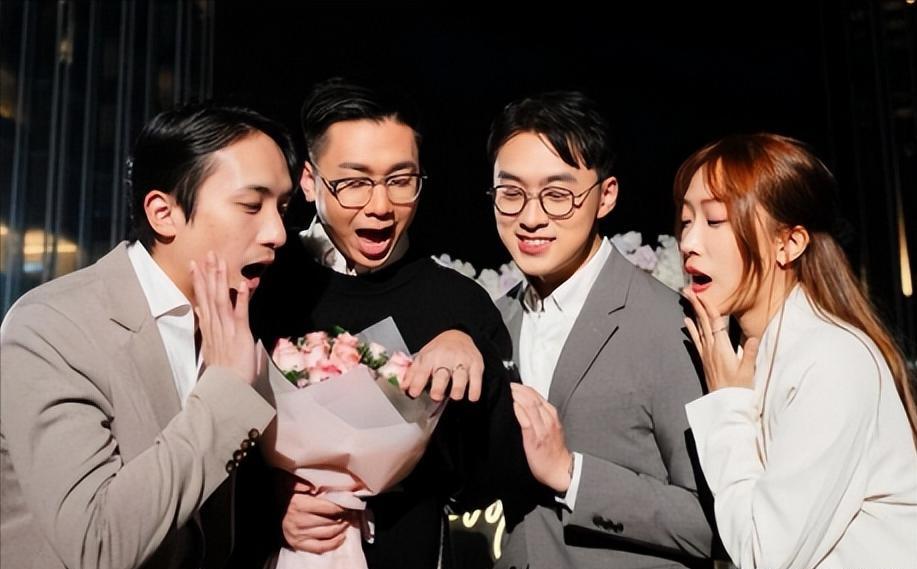 照片里还有个有意思的小细节,几位好友围着那枚一克拉的钻戒打趣,陈书君还笑着调侃,说钻戒闪得晃眼。