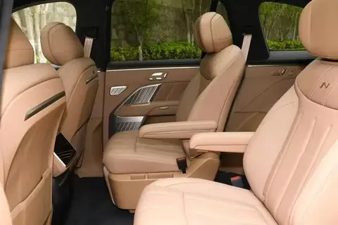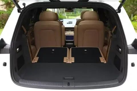 操控方面,全系都是前双叉臂+后多连杆独立悬挂,这种配置在同级别里不多见。开起来很稳,过减速带或者坑洼路面的时候,颠簸过滤得很好,不会有生硬的颠簸感,后排乘客坐着也舒服。双电机版本还有四驱,雨雪天气路面湿滑的时候,抓地力更好,不容易打滑,开着更安心。虽然车身很大,但转弯半径经过优化,在小区里掉头、停车,比想象中灵活多了,不会觉得笨拙。