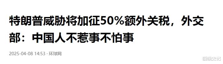 特朗普威胁将加征50%额外关税,外交部:中国人不惹事不怕事 《环球网》