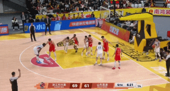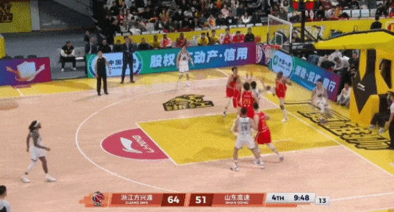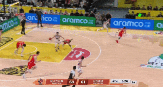 珀塞尔突破吸引防守,分给底角的王证,接球后加了一个投篮假动作,运球调整出手,可惜还是偏了